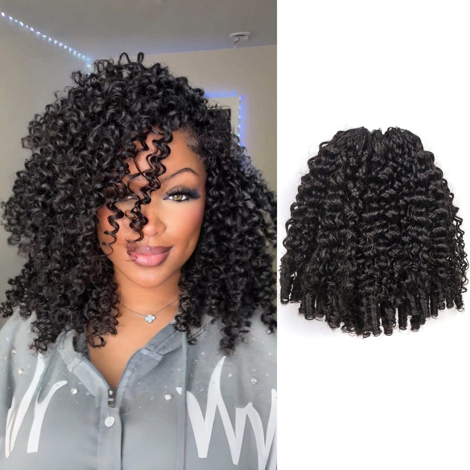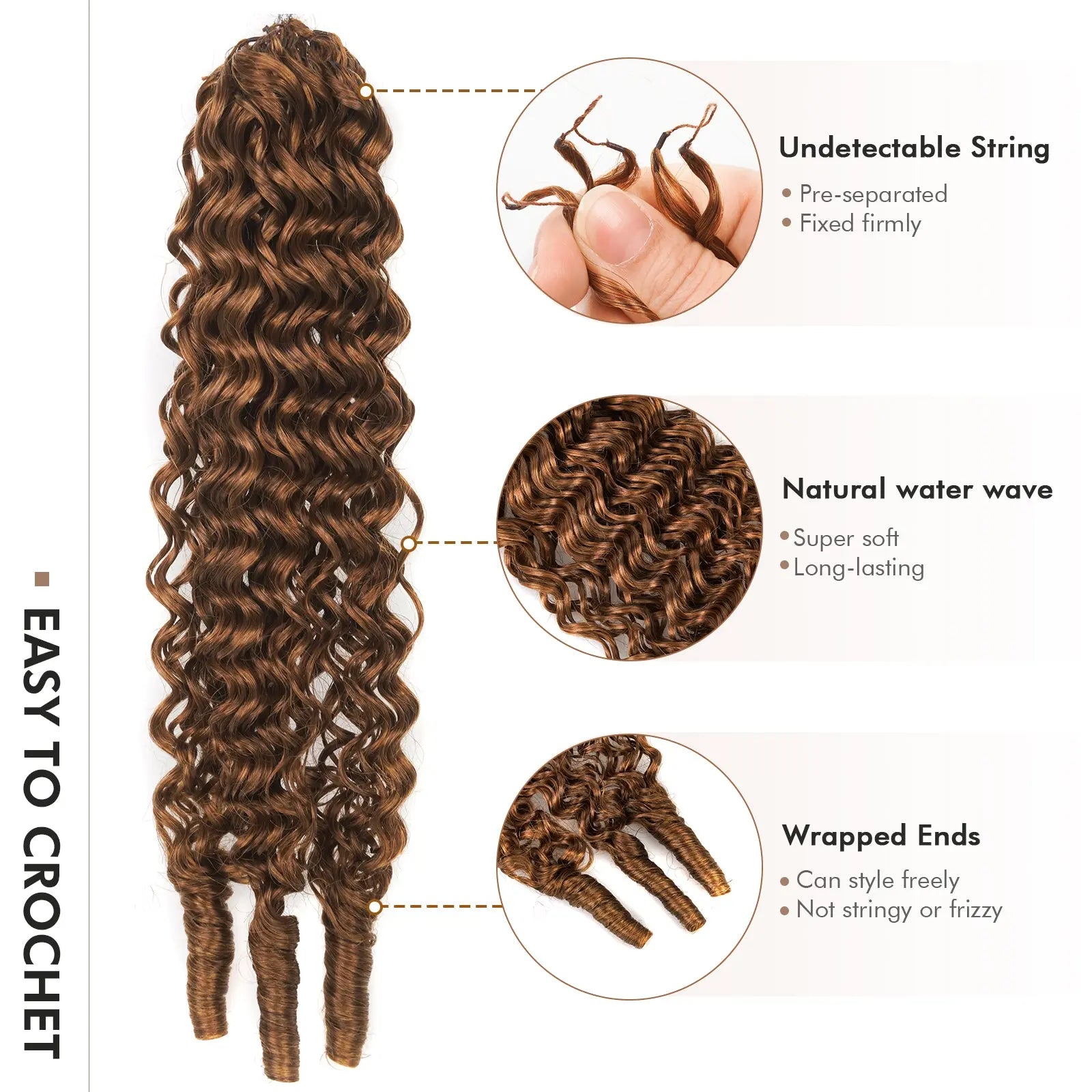 Undetectable String Design: The invisible string design guarantees a secure and reliable fit with no slippage. Ends are spirally wrapped to keep curls neat, and can be fluffed out after installation.