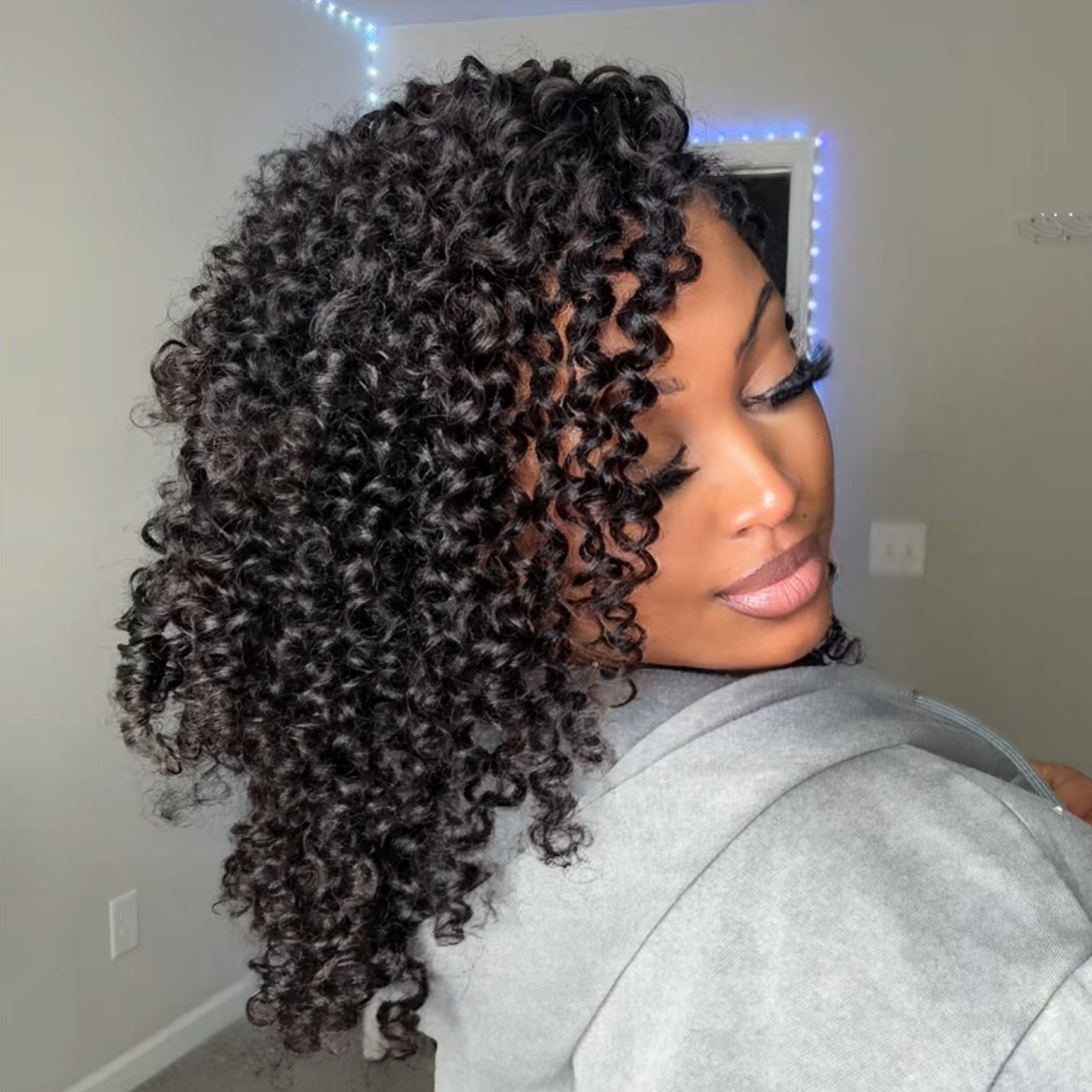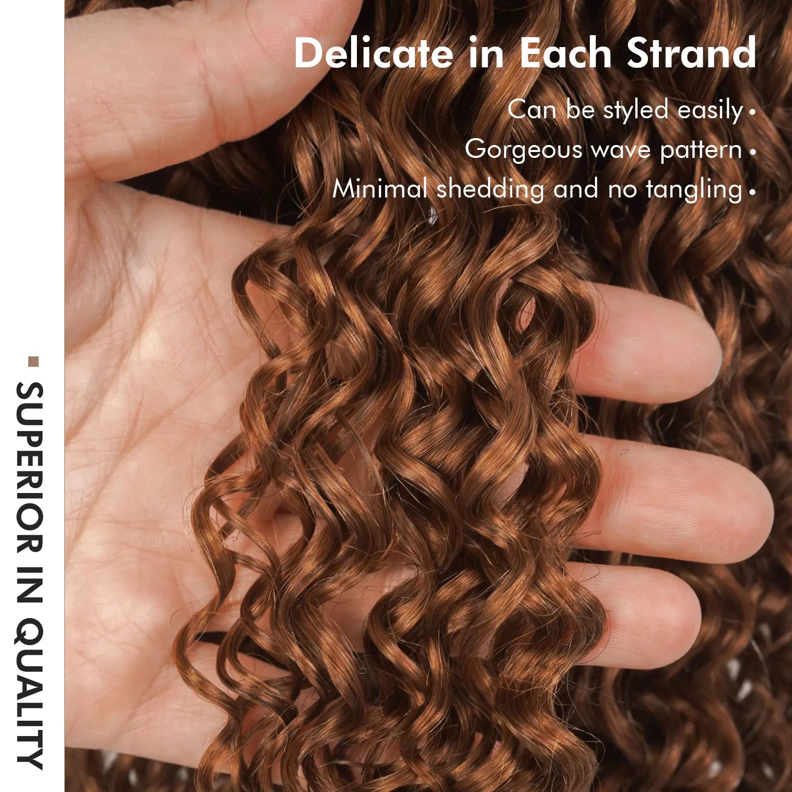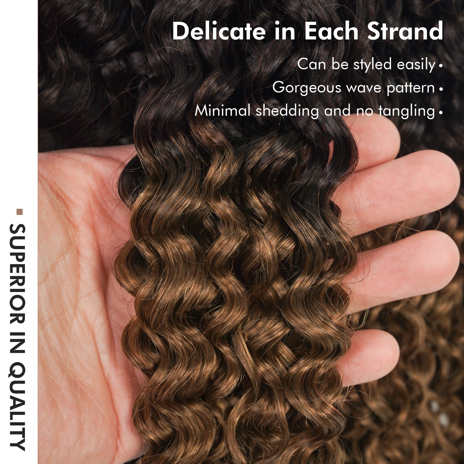 This human crochet hair burmese curly is crafted with meticulous handwork, this curl pattern is similar to the water wave, creating a relaxed glamour and beachy vibe that mimics the effortless beauty of natural hair.